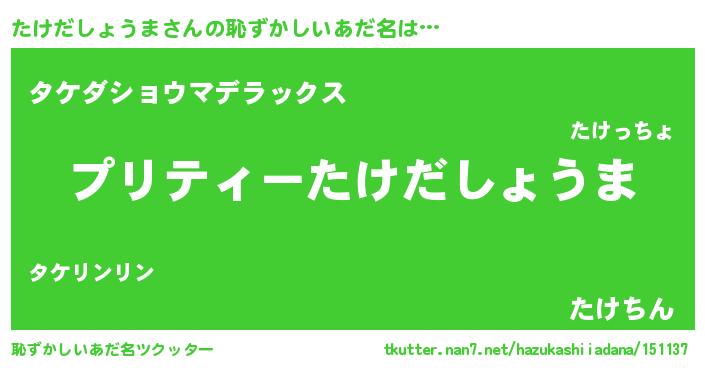 | ヘコむあだ名 | 『たけにー』『たけだしょうま(笑)』 |