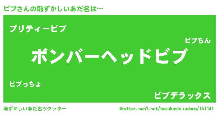 | 男性向けラノベタイトル風あだ名 | 『ノーゲーム・ノービブ』『ビブの憂鬱』 |