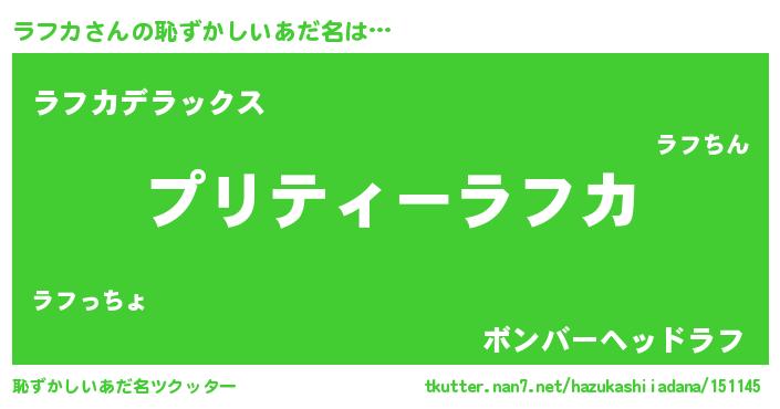 | ヘコむあだ名 | 『ラフっふぃ~』『ラフカ(笑)』 |