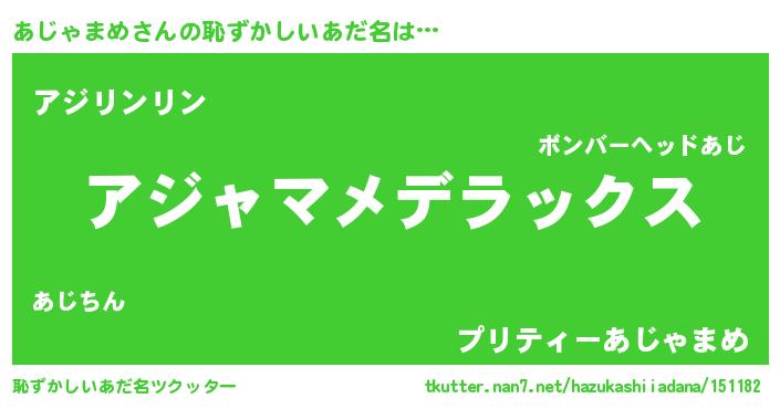 | 男性向けラノベタイトル風あだ名 | 『あじゃまめに滅ぼされるだけの簡単なお仕事です』 |