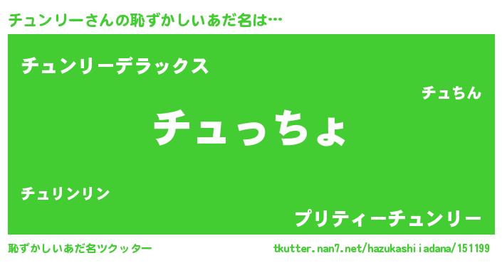 | 意味不明あだ名 | 『チュンリーフォーエバー』 |