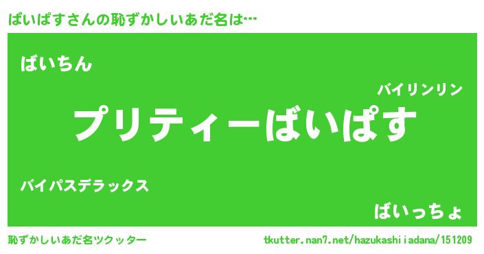 | 意味不明あだ名 | 『ペロリンばいぱす』『永久保存ばいぱす』 |