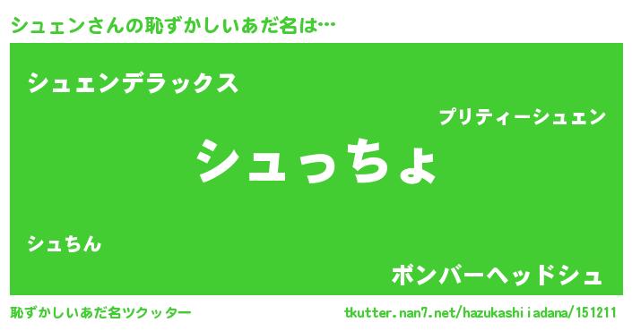 | 意味不明あだ名 | 『シュェンフォーエバー』『自称シュェン』 |