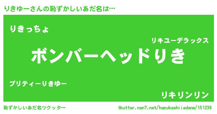 | ヒーロー風カッコイイあだ名 | 『仮面リキダー』『慈愛の使者りきゆー』 |