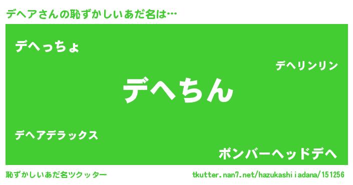 | ヘコむあだ名 | 『デヘア(笑)』『つくし』『デヘっぺ』 |