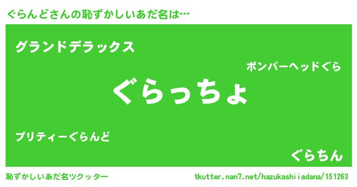 | 意味不明あだ名 | 『ぐらんどフォーエバー』『自称ぐらんど』 |