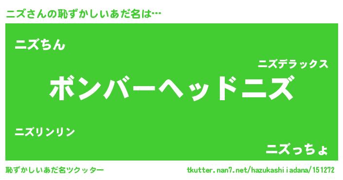 | ヘコむあだ名 | 『ニズ(笑)』『豆乳』『ニズっ子』 |