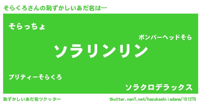 | 意味不明あだ名 | 『とにかく怪しいそらくろ』 |