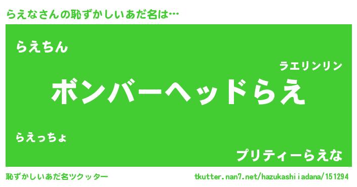 | ヘコむあだ名 | 『らえな(笑)』『らえにー』 |