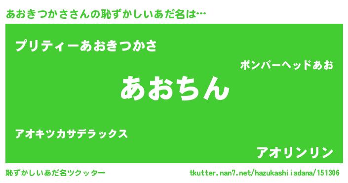 | ヘコむあだ名 | 『あおきつかさ(震え声)』『あおふぇ~』 |