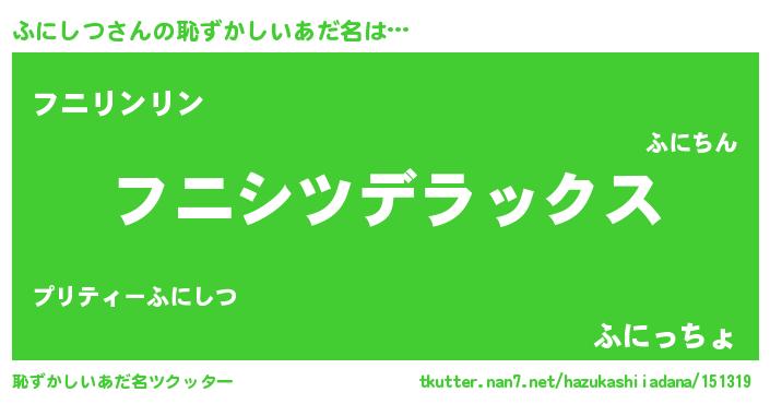 | ヒーロー風カッコイイあだ名 | 『最強戦士フニシツ』『魔戒騎士フニ』 |