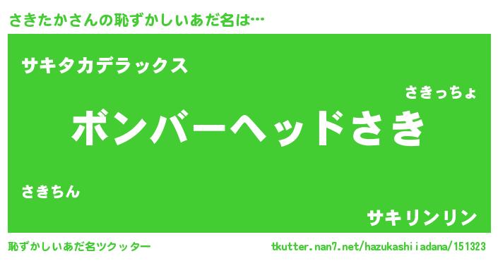 | 欧米人風あだ名 | 『ダニエルさきたか』『ウサインさきたか』 |
