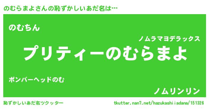 | ヘコむあだ名 | 『のむにー』『のむらまよ(爆)』 |