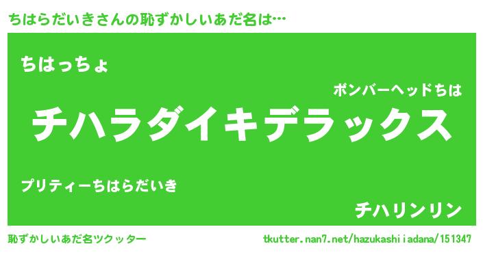 | ヒーロー風カッコイイあだ名 | 『最強戦士チハラダイキ』『仮面チハダー』 |