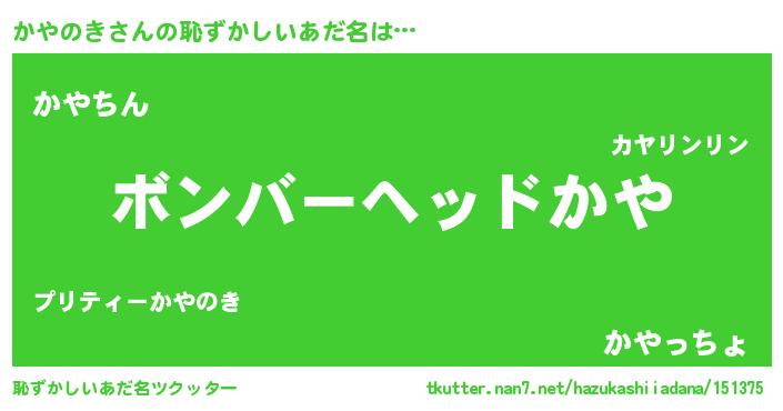 ヘコむあだ名 | 『かやのき(笑)』『酢こんぶ』 |