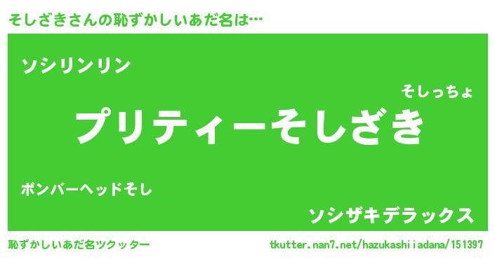 | 意味不明あだ名 | 『ペロリンそしざき』『自称そしざき』 |