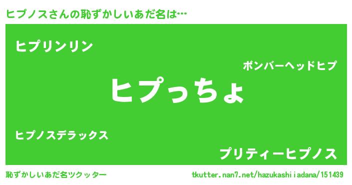 | 男性向けラノベタイトル風あだ名 | 『この素晴らしい世界にヒプノスを!』 |