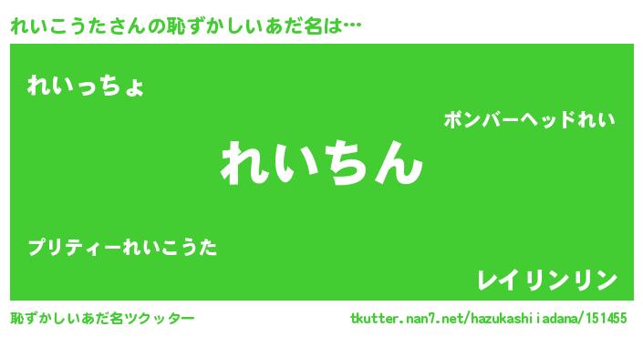 | ヘコむあだ名 | 『れいこうた(震え声)』『レバニラ』 |
