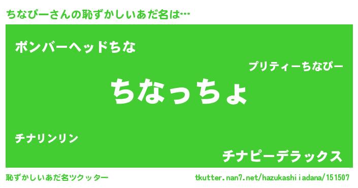 | 意味不明あだ名 | 『なめこ科ちなぴー属』『自称ちなぴー』 |