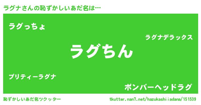 | 意味不明あだ名 | 『永久保存ラグナ』『ラグナフォーエバー』 |