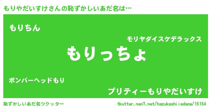 | 男性向けラノベタイトル風あだ名 | 『もりやだいすけに滅ぼされるだけの簡単なお仕事です』 |