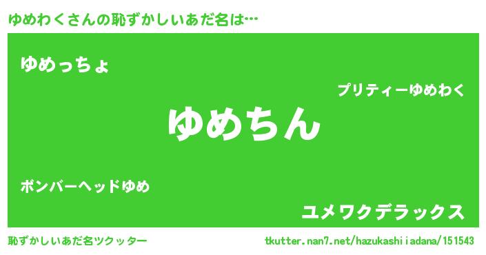 | ヘコむあだ名 | 『ゆめわく(笑)』『牛乳』『ゆめにー』 |