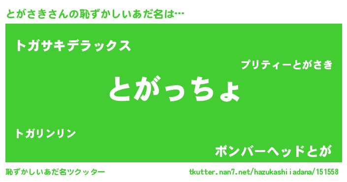 | ポケモン風あだ名 | 『トガゴンZ』『トガサダネ』 |