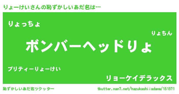 | 欧米人風あだ名 | 『りょーけい・ステッグマイヤー』 |