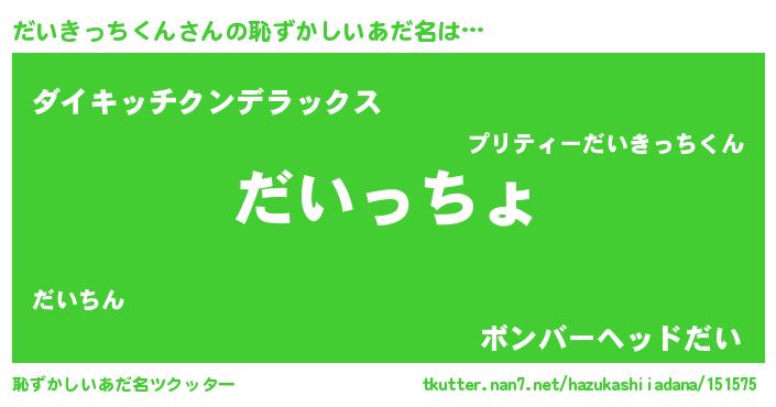 | 意味不明あだ名 | 『だいきっちくんフォーエバー』 |