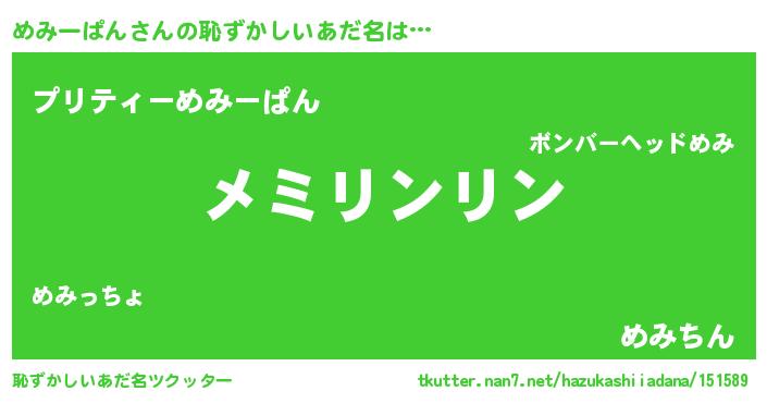 | 意味不明あだ名 | 『とにかく怪しいめみーぱん』 |