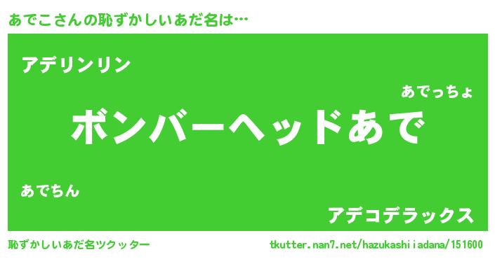 | ヘコむあだ名 | 『あでを』『なまこ酢』『あでにゅー』 |