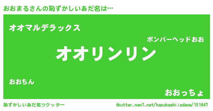 | 意味不明あだ名 | 『とにかく怪しいおおまる』 |