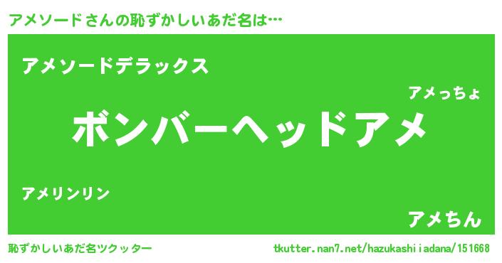 | 意味不明あだ名 | 『住所不定無職アメソード(86歳)』 |