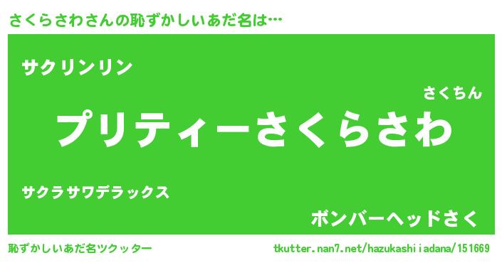 | 胡散臭い通販商品みたいなあだ名 | 『必ず成功するブレスレット…その名も「さくらさわ」』 |