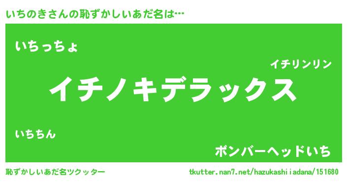 | 意味不明あだ名 | 『自称いちのき』『いちのきフォーエバー』 |
