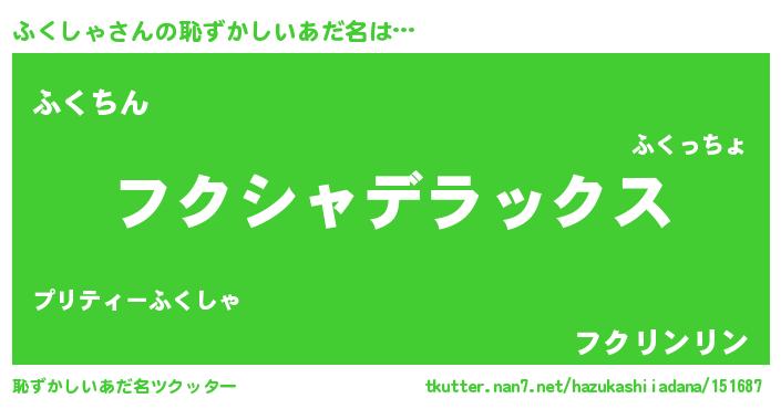 | ヘコむあだ名 | 『ふくしゃ(苦笑)』『ふくを』 |