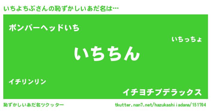 | 意味不明あだ名 | 『永久保存いちよちぶ』『自称いちよちぶ』 |