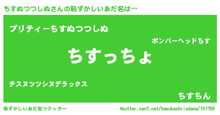 | 女子向けラノベタイトル風あだ名 | 『ちすぬつつしぬの雑貨屋さん』 |