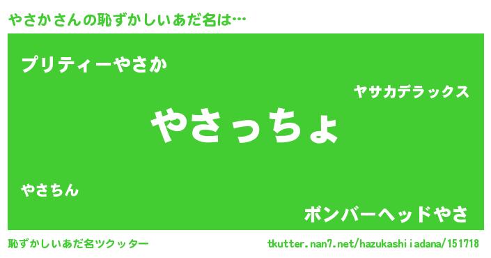 | ポケモン風あだ名 | 『ヤサカダネ』『ヤサキング』 |