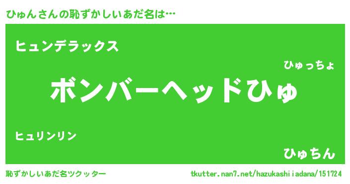 | ヒーロー風カッコイイあだ名 | 『慈愛の使者ひゅん』『究極戦士ヒュン』 |