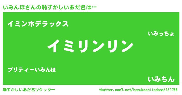 | 意味不明あだ名 | 『とにかく怪しいいみんほ』 |