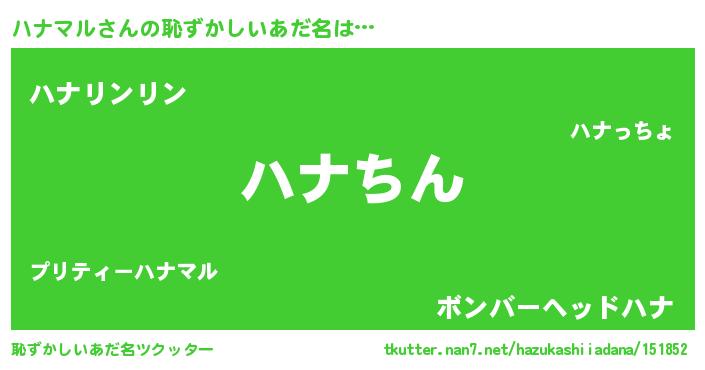 | 意味不明あだ名 | 『永久保存ハナマル』 |