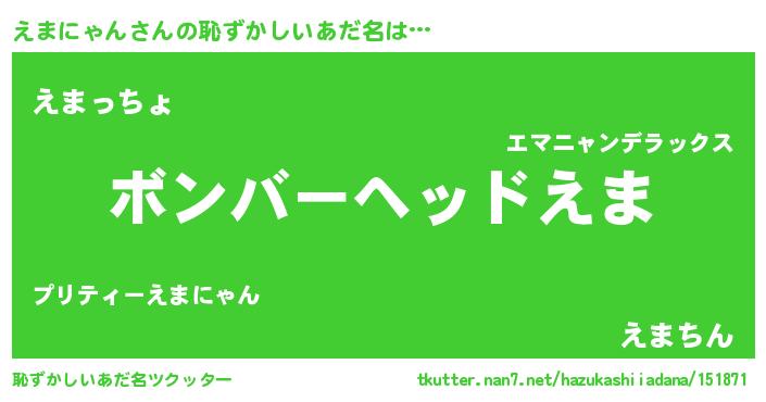 | 男性向けラノベタイトル風あだ名 | 『転生したらえまにゃんだった件』 |
