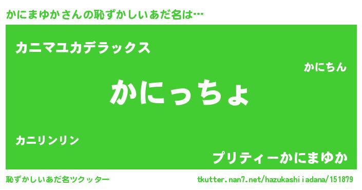 | 伝説のあだ名 | 『最強の忍者かにまゆか』 |