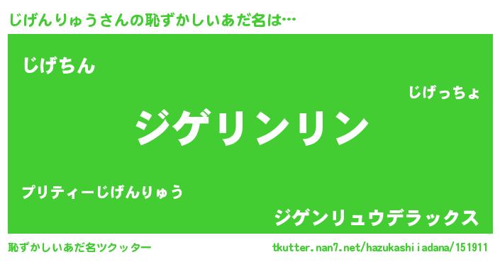 | ヘコむあだ名 | 『じげっちょ』『じげんりゅう(苦笑)』 |