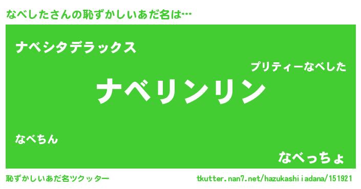 | 男性向けラノベタイトル風あだ名 | 『ダンジョンになべしたを求めるのは間違っているだろうか』 |
