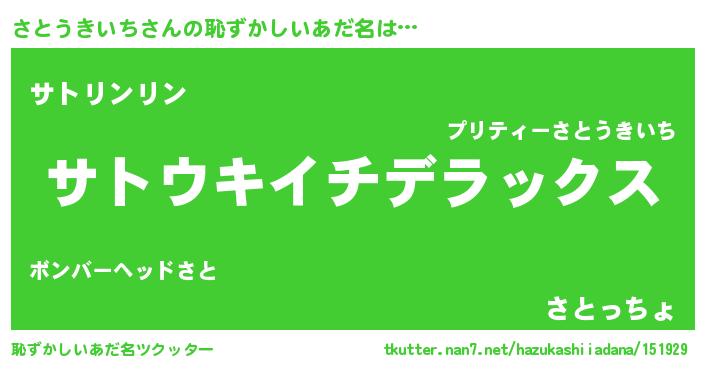 | 男性向けラノベタイトル風あだ名 | 『Re:さとうきいちから始める異世界生活』 |