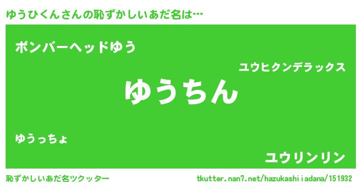 | ヘコむあだ名 | 『ゆうひくん(遠い目)』『ゆうお』 |