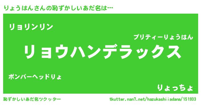 | 意味不明あだ名 | 『自称りょうはん』『ペロリンりょうはん』 |