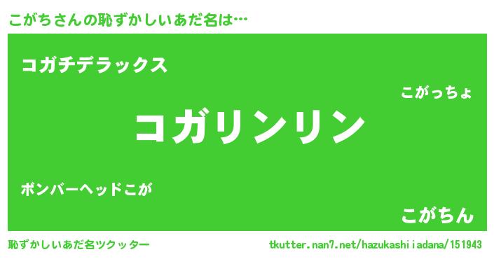| 意味不明あだ名 | 『めかぶ科こがち属』『自称こがち』 |